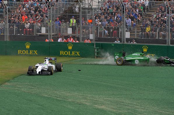 In other news, Williams driver Felipe Massa displayed anger towards Kamui Kobayashi after a lap-one turn-one incident caused by the Caterham driver, asking for Kobayashi to be given a race ban for his dangerous driving.